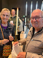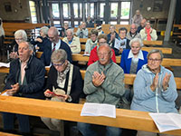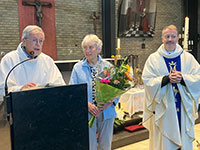 Daarna volgde een ingetogen pelgrimsviering in de kerk, geleid door priesters en diakens, met zang van Marialiederen begeleid door organist Harrie Termeer. Tijdens de viering werd het 25-jarig jubileum van diaken Pieter Schevers gevierd; hij ontving een gepersonaliseerde kaars, een kaarsenstandaard en wijn, terwijl Nellie een boeket bloemen kreeg. Na de viering staken pelgrims kaarsen aan.