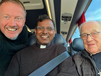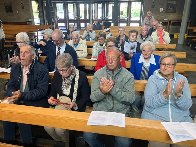 Terug in de bus werd de geslaagde dag afgesloten met applaus en plannen voor een volgende pelgrimage.