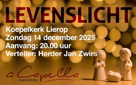 Mannenkoor a Capella presenteert op zondagavond 14 december vanaf 20.00 uur in onze Koepelkerk de tweede editie van Levenslicht.