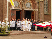 Die viering had een plechtig karakter. Bij aanvang werd de benoemingsbrief van de bisschop voorgelezen. De aanhef daarvan klonk alsof hij door Petrus of Paulus in eigen persoon geschreven was. De katholieke Kerk gaat niet voor niets terug op de oude apostolische tradities. En er waren nog meer speciale riten. Pastoor Hedebouw hernieuwde zijn wijdingsbeloften aan deken Seidel, die namens de bisschop optrad, en beloofde zijn taak als pastoor van onze parochie ‘naar eer en geweten te vervullen, tot lof van Gods Naam en tot heil van de Kerk en de gelovigen’. Daarna overhandigden parochianen uit alle parochielocaties - via de deken - enkele symbolen aan pastoor Hedebouw: de sleutels van de kerken, het Evangelieboek, een parochiekaars, de kelk en ciborie en een beeltenis van Onze Lieve Vrouwe van Ommel.