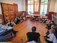 Soms kunnen dingen verrassend lopen. Vorige maand waren er weinig kin­de­ren en ouders op de Familie­zon­dag, nu puil­den de meeste ruimtes uit. Daarom waren de kin­der­groepen verhuisd naar beter passende ruimtes en zaten de ouders in ’t Kwar­tier. Kortom, de Familie­zon­dagen zijn een nieuwe fase in gegaan. Mede omdat ze nu offi­cieel deel uitmaken van het voor­be­rei­dings­tra­ject voor Vormsel en Eerste Communie.