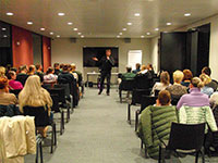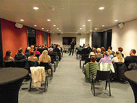 Het was een beetje pionieren, net als in het eerste jaar. De ouders kon­den boven in de biblio­theek koffie of thee pakken en luister­den in een nabij­ge­le­gen zaal naar een pre­sen­ta­tie van de pastoor over geloven en Gods­beel­den. Je Gods­beeld veran­dert in de loop van je leven.