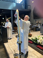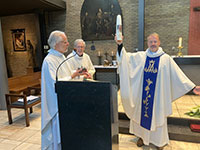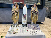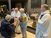 Daarna volgde een ingetogen pelgrimsviering in de kerk, geleid door priesters en diakens, met zang van Marialiederen begeleid door organist Harrie Termeer. Tijdens de viering werd het 25-jarig jubileum van diaken Pieter Schevers gevierd; hij ontving een gepersonaliseerde kaars, een kaarsenstandaard en wijn, terwijl Nellie een boeket bloemen kreeg. Na de viering staken pelgrims kaarsen aan.