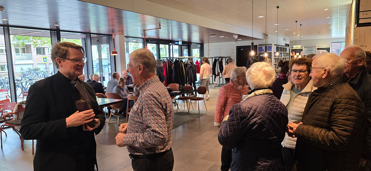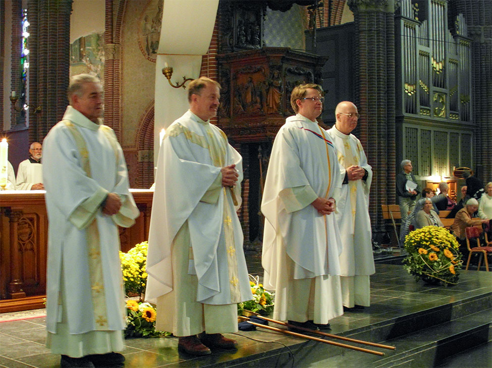 In zijn dankwoord sloot pastoor Hedebouw zich hierbij aan. ‘Toen ik hier kwam dacht ik: kan ik dit wel, in zo’n grote gemeenschap? Maar ik hoef het niet alleen te doen: God zal mij helpen’. De pastoor dankte iedereen voor de mooie viering en de hartelijke contacten die hij nu al ervaart. ‘Er zullen uitdagingen komen, maar ik kijk uit naar een goede samenwerking met u allen, in Christus’.