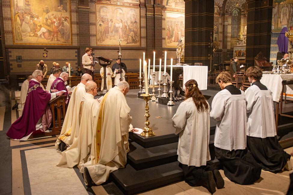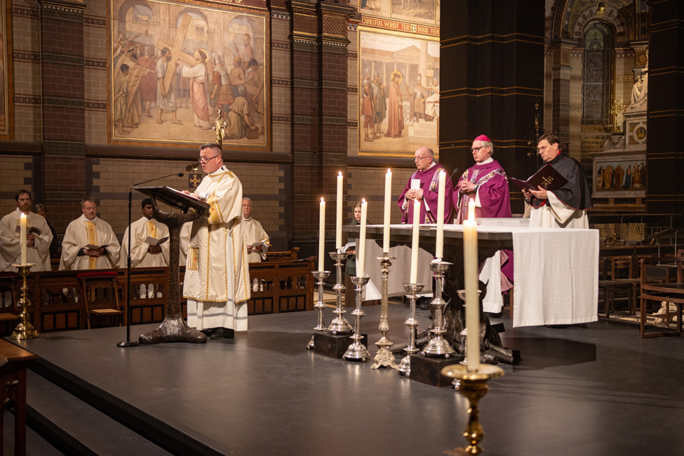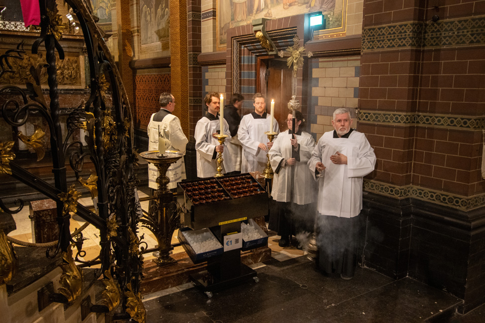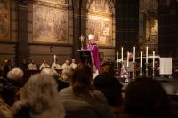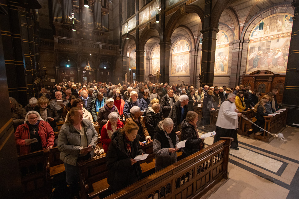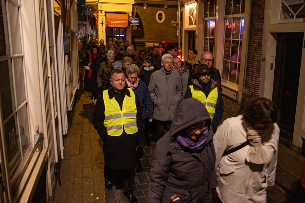 Ook bisschop Gerard de Korte neemt dit jaar weer deel aan de Stille Omgang. In de co-kathedrale basiliek van Sint-Nicolaas vieren pelgrims samen de Eucharistie, waarna zij gezamenlijk de tocht lopen.